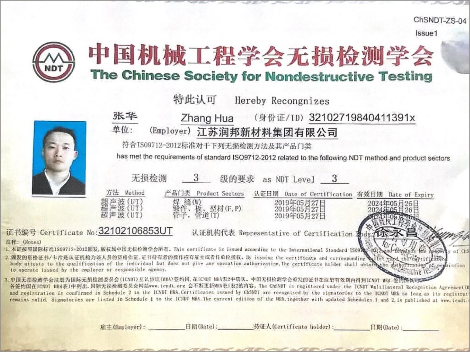 檢測人員資質(zhì)
